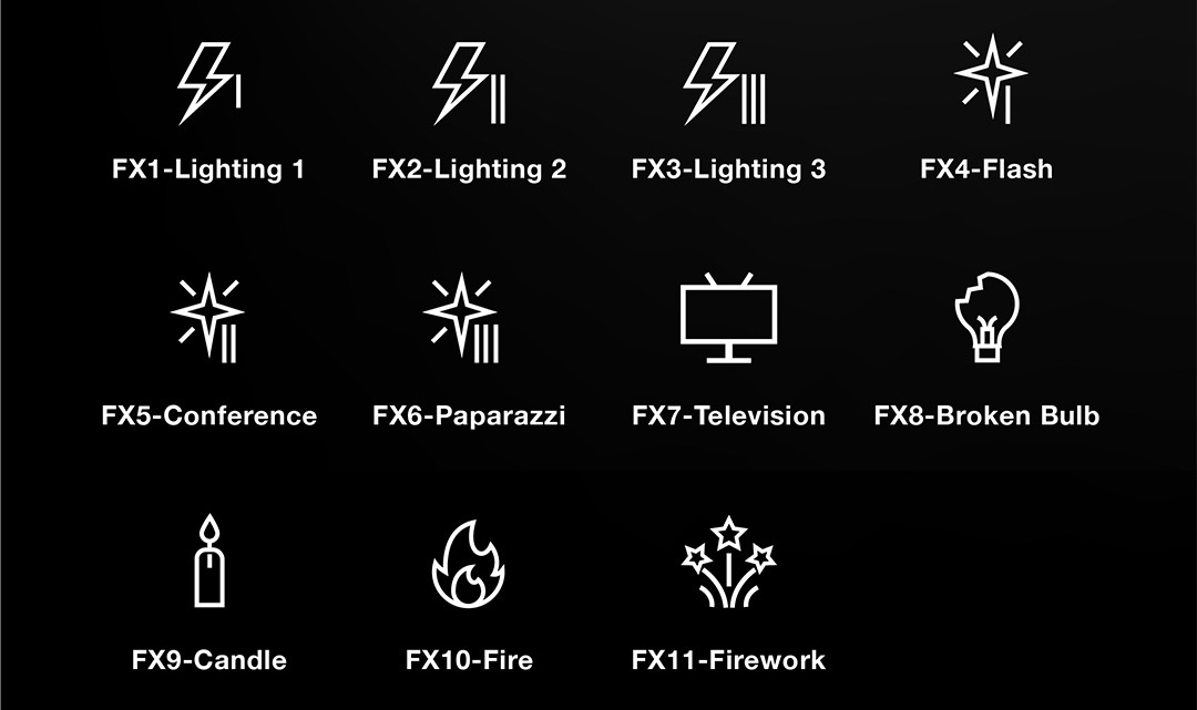 SL100Bi підтримують 11 режимів світлових спецефектів, які дозволяють легко імітувати різні сцени з життя.